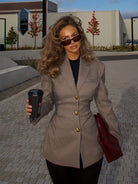 Da un paso hacia la sofisticación con el blazer Solveira — donde la sastrería atemporal se une con la versatilidad diaria. Con su corte entallado favorecedor y su clásico estampado de cuadros, este blazer eleva tanto los looks casuales como los formales. Su silueta estructurada, el cuello definido y el cierre de botones aportan una elegancia pulida, convirtiendo a Solveira en un imprescindible que pasa con facilidad de la oficina a los planes de noche.