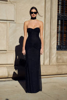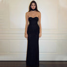 Estructura Sin Tirantes con Cuello Esculpido: Enmarca el escote con un contraste audaz y refinado.