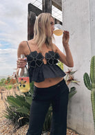 Eleva tu guardarropa con el Top Elegante Kelsey, una pieza sofisticada diseñada para añadir un toque de glamour a cualquier atuendo. Con delicados adornos florales y una silueta cropped que favorece, este top es perfecto tanto para la elegancia diurna como para la sofisticación nocturna. Con sus tirantes ajustables y su cómoda espalda elástica, ofrece un ajuste impecable que realza tu forma natural.