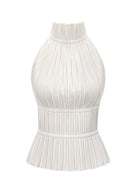 Haz una declaración con el Top Plisado Sin Espalda Lauren, una mezcla perfecta de elegancia y modernidad. Confeccionado con un impresionante tejido plisado, este top presenta un sofisticado escote alto tipo racer y un diseño sin espalda para un look audaz pero refinado. Ya sea estilizado para una noche fuera o un conjunto chic de día, es un básico versátil que eleva sin esfuerzo cualquier atuendo.