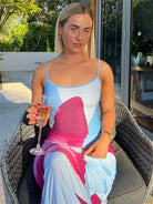 Captura la belleza atemporal con el Vestido Solana, un maxi vaporoso que refleja todo el encanto del Mediterráneo. Con un escote pronunciado, espalda descubierta y lazada elegante al cuello, Solana irradia sofisticación y libertad. Su estampado artístico vibrante aporta calidez y personalidad, perfecto para eventos de verano, escapadas a la playa o cenas al atardecer.